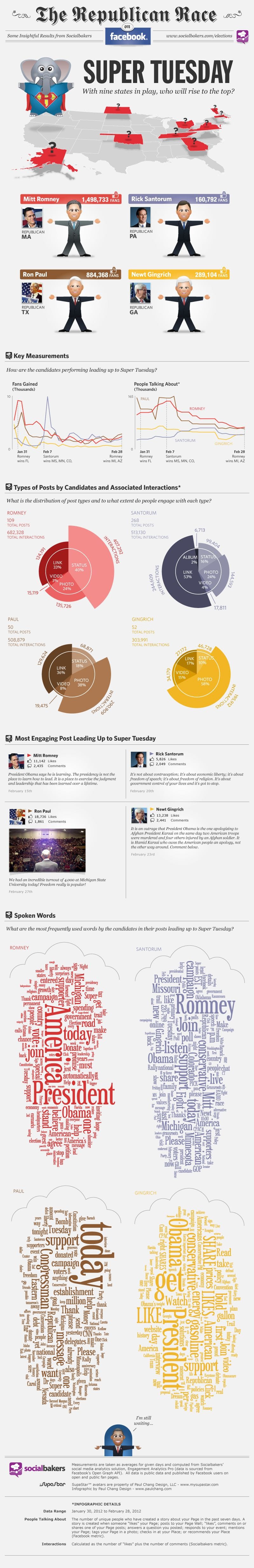 ALSO, going into Super Tuesday, the social media analytics company Socialbakers did a study analyzing the effectiveness of social marketing campaigns across all major social networks (including Facebook, Twitter, YouTube, LinkedIn and Google+). Here are the findings from their Super Tuesday study, revealing Facebook performance correlations in key campaign milestones: