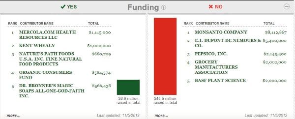 Prop 37 is a perfect example of a race where money was the major factor in the proposition's defeat, and as the Yes campaign, although well funded as compared to other propositions could not come close to matching the investments made by the likes of Monsanto, Dupont, Pepsico, and other multi-million dollar donors.