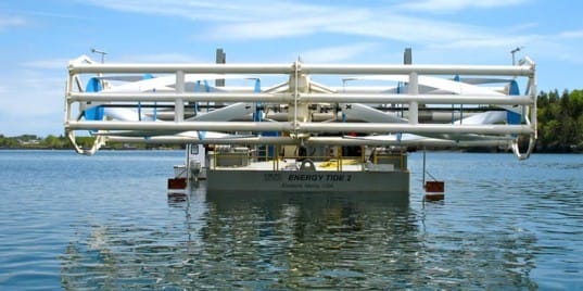 The Bay of Fundy between Maine and Canada, with its 50 foot tides, will now have the first commercial grid-tied tidal power in the United States. The system will generate 3 MW, enough for 1,200 homes. Tidal power uses the movement of ocean water from incoming and outgoing tides to turn underwater devices, generating power.