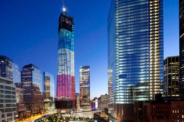 Sept. 11 remembered - Photos - 1 of 16 - POLITICO.comThe tower known as 1 World Trade Center, left, the National September 11 Memorial, bottom left, and 4 World Trade Center, right, are bath...