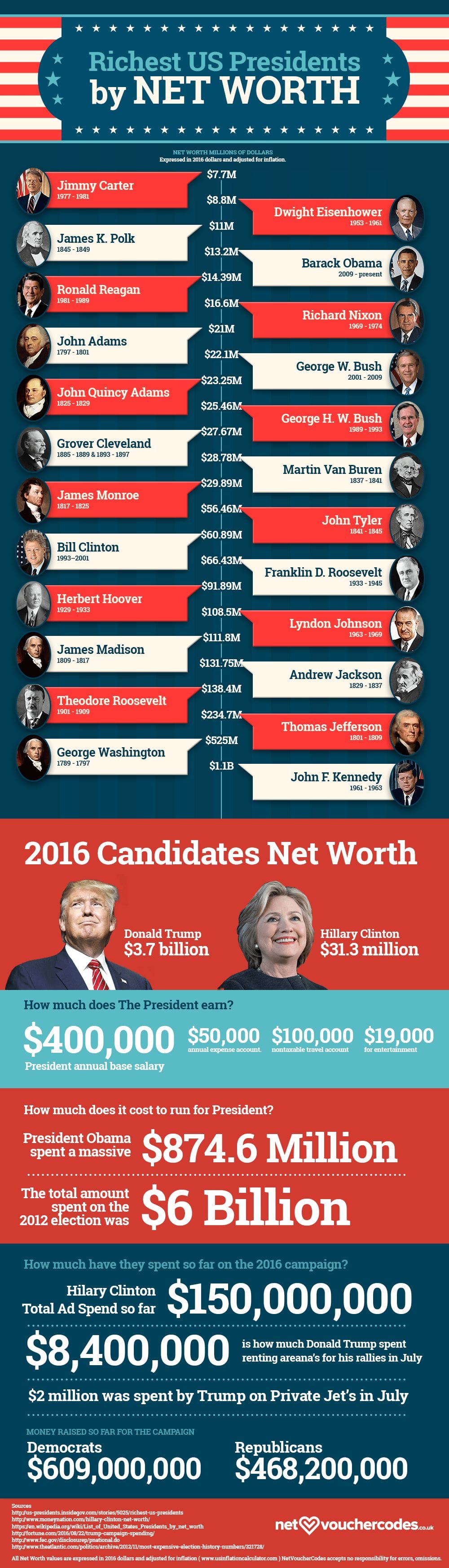 Richest President by Net Worth. An infographic by the voucher codes website NetVoucherCodes.co.uk.