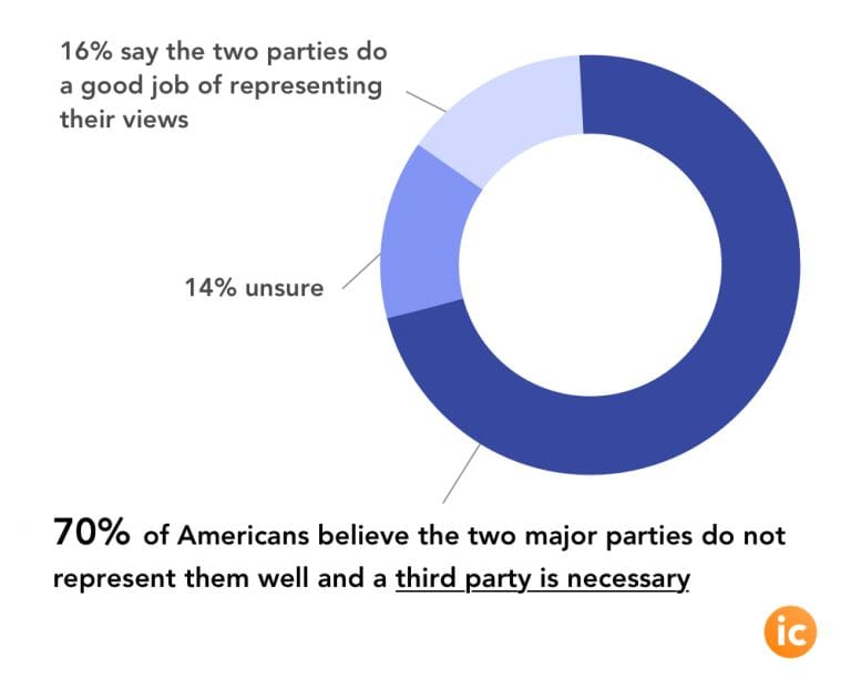 An icitizen survey from June, for example, said 70 percent of Americans do not feel represented by the Republican and Democratic Parties, and that a third party was needed.