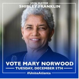 In fact, almost all of Norwood’s opponents from the November general election have endorsed her in the runoff, including Atlanta City Council President Ceaser Mitchell, former Council President Cathy Woolard, Fulton County Commission Chairman John Eaves, and former State Representative Margaret Kaiser.