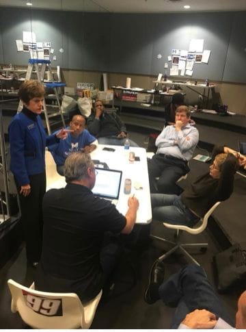 Photo Credit: Photo courtesy of Mary Norwood for Mayor. Mary Norwood talks runoff debate prep with former opponents Council President Mitchell, former Council President Cathy Woolard, and former Atlanta COO Peter Aman.