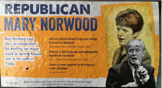 Photo courtesy of Mary Norwood for Mayor and paid for by the Democratic Party of Georgia.