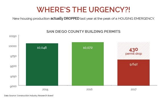 Last year, at the peak of San Diego County’s housing emergency, housing production actually dropped, according to new data. Demand for new housing was at an all-time high and our homeless crisis was making national headlines, but builders were unable to pull permits.