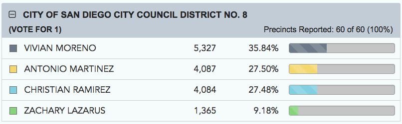 Ramirez told IVN San Diego, "We had a very aggressive field campaign we were knocking on doors, urging folks to get to the polls and it's clear to us that hard work is paying off and we're just waiting for the final numbers so we can continue to build our campaign and ensure we win in the November election."