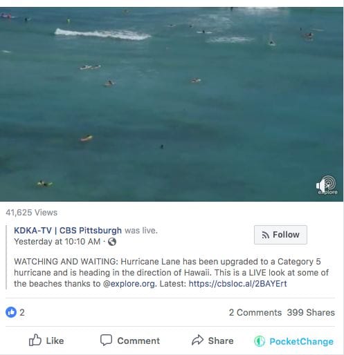 "We actually don't work with Facebook at all. We're essentially a browser extension so it downloads to your computer and overlays the button onto your Facebook but it doesn't have to interact with Facebook. The good thing about that is we don't have to worry about getting shutdown or any issues coming up, not that their would be, but we don't have to associate with the very questionable decision making around data that they've done, and we also more importantly expand to other news consumer sites, twitter, New York Times, YouTube, you can access PocketChange and do something about causes you care about."