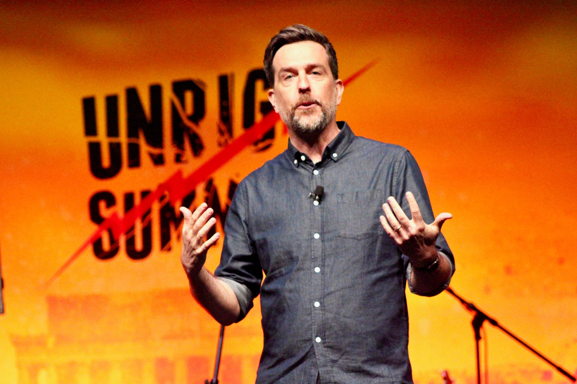 Which is kind of perfect, because Ed Helms was a headline speaker at the Unrig Summit this year, along with Jennifer Lawrence again, and potential 2020 independent presidential candidate and Starbucks founder and former CEO Howard Schultz.