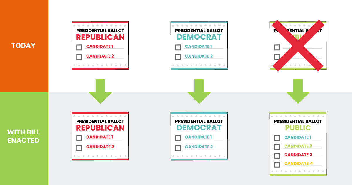 Instead, IVP calls for a simple, nonpartisan solution: a public presidential primary ballot that would allow any voter, regardless of party, to vote for any candidate.
