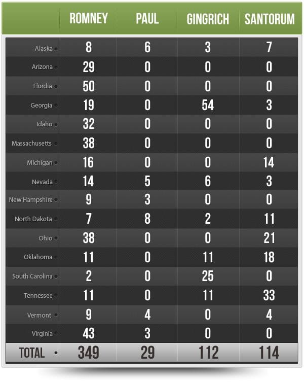 Because of the results, Sen. Santorum forfeited at least seven delegates that he otherwise would have won. In terms of where those delegates go, three of those delegates go to Gov. Romney and the remaining four are unallocated with Republican Party officials making the ultimate decision. The establishment getting to pick their choice is bad news for Sen. Santorum.