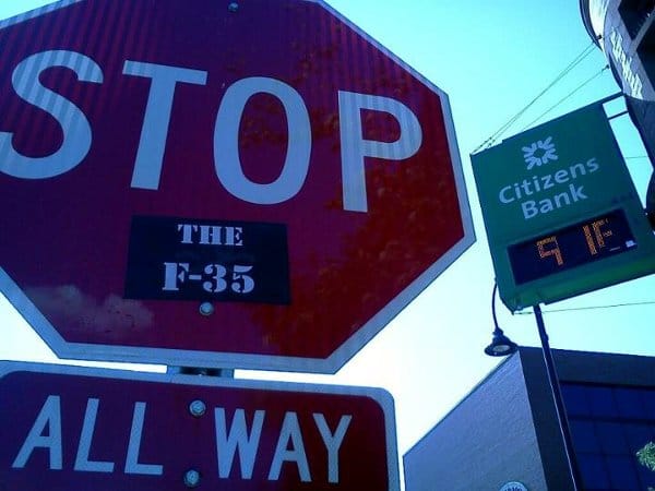 Public support for the F-35 continues to be strong, but the Air Force’s admissions of error haven’t had time to sink in yet. An anonymous poster campaign asks people to “Please show your support for keeping the F-35 in Burlington,” by signing a petition, although it doesn’t explain how to “keep” something that doesn’t yet exist.