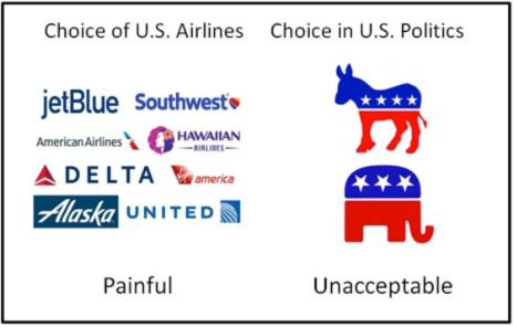 The two choices we get in most elections—presidential or not--are the product of the rules determined by the leadership in each of the two parties. (I have previously referred to these as “country-club rules,” but this may be unfair to country clubs!)
