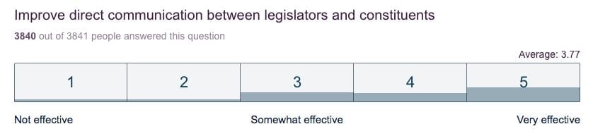 In the third online survey conducted by the Bridge Alliance, nearly 4,000 respondents agreed that Congress is not doing a good job representing people. And 0% were willing to say, “Congress rocks!”