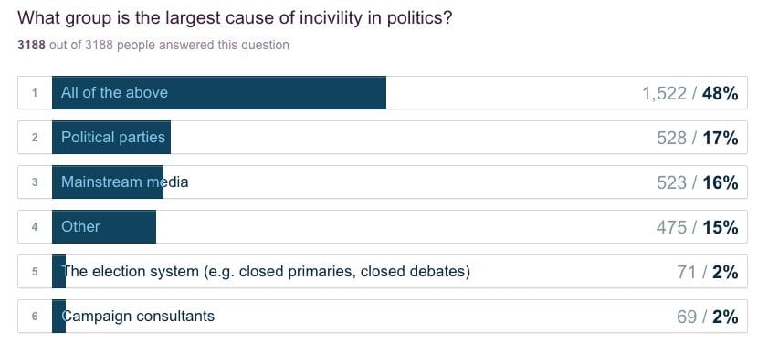 The two largest culprits of incivility according to respondents? Mainstream media and political parties.