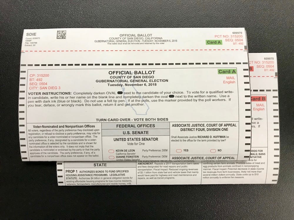 Californians: You Have Two Ballot Cards to Vote on in 2018