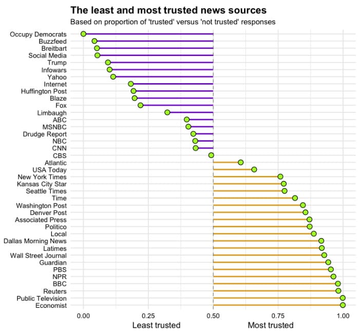 The American public is more skeptical of traditional and mainstream media outlets now than at any point in modern US history. So that leaves the question, in the era of "fake news," which outlets do Americans trust most?