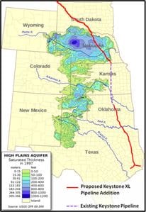 Now if you look at the map closely enough, you will see that the current Keystone Oil Pipeline already goes through the very eastern edge of the Ogallala Aquifer. This is a smaller crossing than the new proposed extension would make as it would cut diagonally across one of the bigger sections. And, just to the south of the aquifer, the new pipeline will intersect the existing pipeline and head south into Oklahoma where the two will split once again. My question for this is why can't the extension and the existing pipeline meet on the north side of the aquifer and thus use the current aquifer crossing so it is still in that one smaller area? Or another possibility... why can't the pipeline move down the western edge of the aquifer from Wyoming to Colorado to New Mexico and then into Texas so that it wouldn't cross the aquifer at all?