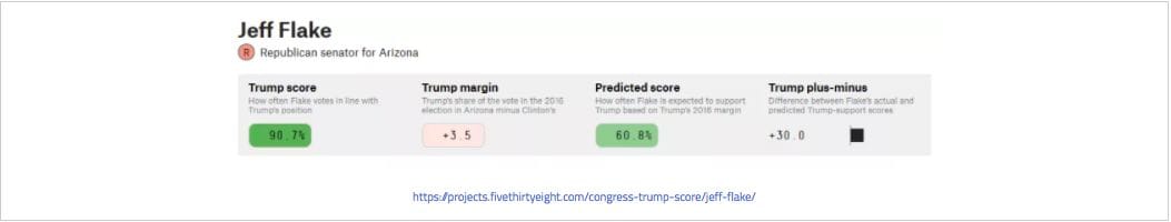 Now, with that said, Senator Flake is a Republican, meaning this data should be consumed with a grain of salt. Many will see this chart and think, “Wow, he talks about how much he hates Trump, but then he votes like this?!”