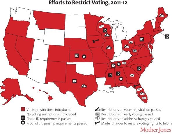 Republicans have repeatedly argued these laws are a necessary protection against the threat of voter fraud in the 2012 election.