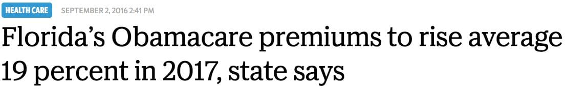 When it came to specific political issues, though, two in particular stuck out for swing voters in a number of states: jobs and rising health care premiums. While Wasserman Schultz claims Florida has had the lowest rate increases in the United States, that doesn't mean these increases are not going to be a concern for some. It also doesn't address the problem of limited options in the state. Source: Miami Herald, 9/2/16
