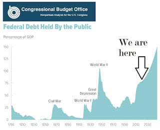 This chart, from the Congressional Budget Office, illustrates exactly where we are at this point in our nation's history (I added the "we are here" with an arrow):