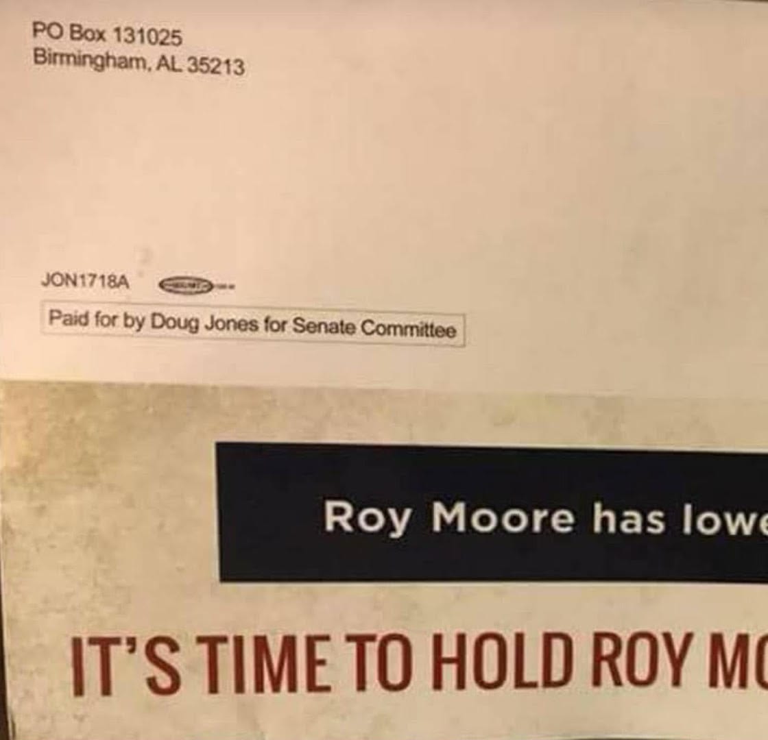 A new mailer is gradually making its rounds on social media allegedly from the Doug Jones for Senate Committee, in the special US Senate election in Alabama.