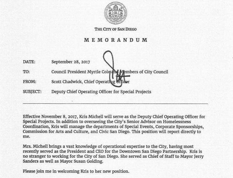 Sources have told IVN San Diego Michell is expected to be the point person on special projects, including the Convention Center expansion plan and working on a viable homelessness solution. As most are probably aware, the city of San Diego is making national headlines for the Hepatitis A outbreak that's claimed the lives of 17 people and hospitalized nearly 400.