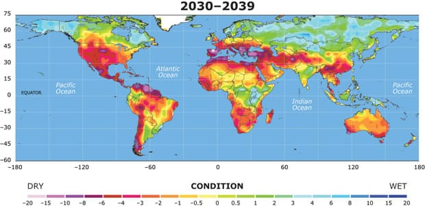 Though farmers are coping with the current drought situation for now, increase of widespread droughts will make their position more dire. Better farming techniques and reformed water allocation policies will be need to be implemented in the near future to combat droughts. Credit: thinkprogress.org