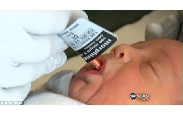 At a hospital in East Tennessee a staggering 50% of ALL babies are born addicted. When they are 48 hours old they sometimes are given morphine to help taper off the addiction. They scream, rage, and twitch like any addict in withdrawal. One nurse says they have a fearful look in their eyes. Such babies have a host of developmental and behavioral disorders which can be long-term in nature.