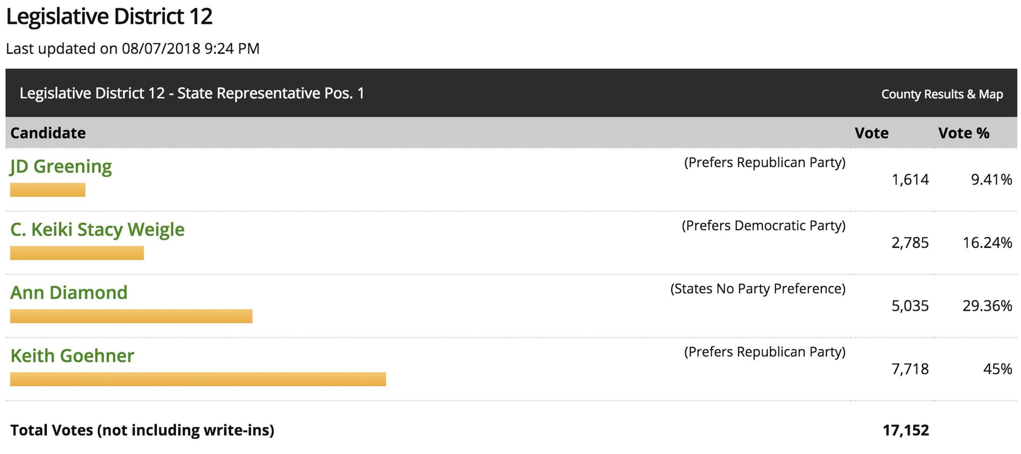 Independent candidate Dr. Ann Diamond garnered enough votes in Washington state's 12th legislative district, position 1 Tuesday to place in the top two and advance to the November election. Dr. Diamond could now make history as she would be the first independent elected to the state legislature if she wins in November.