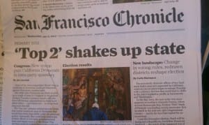 It's a little hard to believe that in April of 2010, I sat in a meeting with their editors and then Lt. Gov. Abel Maldonado to pitch them on endorsing the “Top 2” open primary (Proposition 14). They did and their article today begins, "The potentially dramatic effects of two landmark ballot measures approved by California voters in recent years began to emerge Tuesday with a primary election that could lead to shifts in the state's legislative profile in Sacramento and Washington."