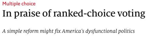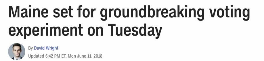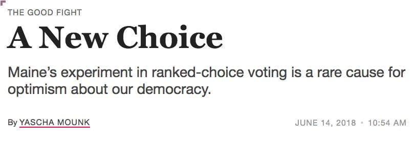There are more people now interested in voter-centric and voter-led election reform than ever before, and this has caught the attention of the mainstream media. Look at the news coverage on Maine:Source: The Economist