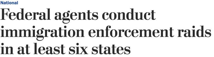 According to a report from The Washington Post, a student in Chicago told her teacher about an ICE raid on her home, during which her father was arrested. Her father is an undocumented immigrant whose criminal record reportedly only included a traffic ticket. The same report says a barber and business owner with no criminal record (according to advocates) was arrested in Baltimore.