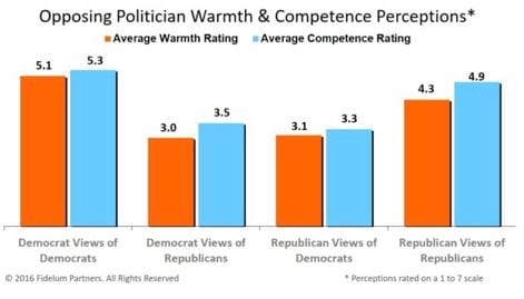 Despite decades of exposure to both Clinton and Trump, voters have very different warmth and competence perceptions of each candidate, depending on their political party.