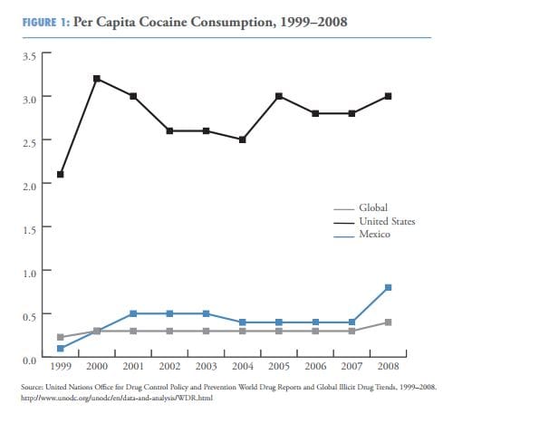 Mexican use of cocaine has risen in the past few years, signaling that perhaps the drug war will continue, but shift towards battles over the import and export a different consumable.