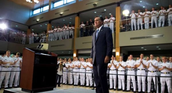 Romney opens his speech with generous praise for Gen. George Marshall, one of the more distinguished graduates of the Virginia Military Institute (VMI), where he spoke. After praising Marshall, who is widely credited with being instrumental in rebuilding Europe after World War II, Romney went directly to a discussion of the killing of four Americans in Libya in September, as if the present moment and the aftermath of the Second World War were equivalent times of crisis.