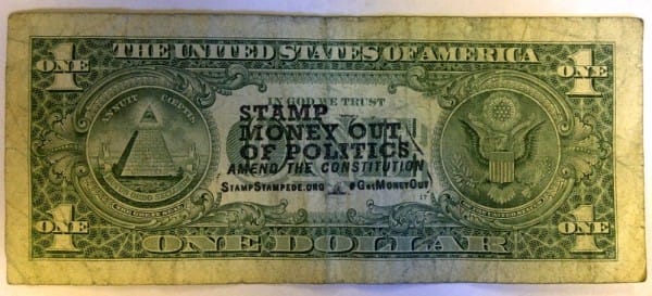 There are virtually unlimited variations of stamps offered through the campaign’s website but Cohen’s personal stamp reads, “STAMP MONEY OUT OF POLITICS. AMEND THE CONSTITUTION.” The campaign hopes to attract supporters by empowering the individual. By using the Federal Reserves average lifespan of a bill (4.8 years), Stampstampede.org details the potential of one diligent supporter: