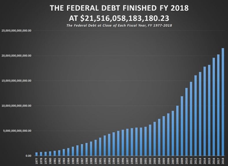 WASHINGTON, DC - The national debt increased by $1,271,158,167,126.72 for fiscal year 2018 according to the latest information published by the U.S. Treasury this month. (The U.S. federal government's fiscal– or budgetary– year begins and ends on October 1st, not at the end of the calendar year.)