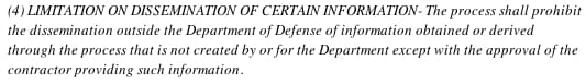Almost seems the worst of both worlds — mandatory disclosure without any liability protection for the contractors AND no comprehensive improvement in information sharing about threats and vulnerabilities by keeping the information stove-piped. Sec. 936,d,4