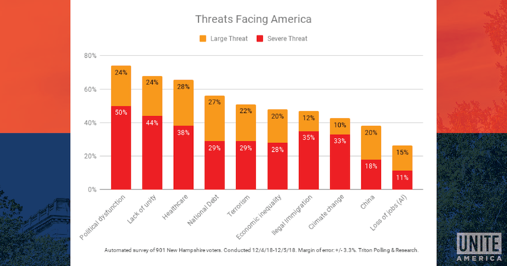 2. More voters view political dysfunction (74%) and our disunity (68%) as a threat to America than any other major issue.