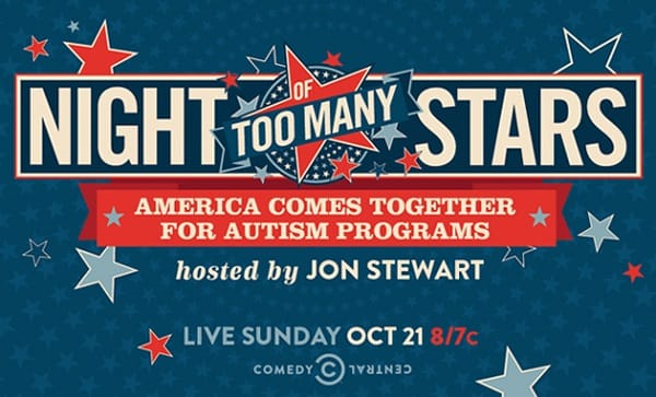 Sunday night, Comedy Central presented the fourth airing of the Night of Too Many Stars: America Comes Together for Autism Programs, hosted by Jon Stewart. The two-hour special was a star-studded fundraiser to benefit education and service programs dedicated to autistic individuals and their loved ones.