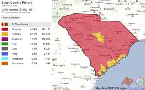 What's more important than these percentages, however, is the actual numbers of delegates distributed in South Carolina. Of the 25 delegates up for grabs, Gingrich won 23, bringing his total number of delegates up to 25, just 8 behind Mitt Romney's 33. Rick Santorum and Ron Paul did not receive any delegates from the South Carolina Primary and their total number of delegates remains at 14 and 4, respectively. Florida, with its winner-takes-all system, will be a defining moment for one candidate, as the winner will take all 50 delegates, placing them ahead of the pack.