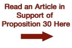 Prop. 30 is a bad idea that is opposed by taxpayer groups and small businesses across the state because it raises fifty billion dollars in taxes, hurts California small businesses and families, but doesn't even guarantee new funding for schools. We need real solutions to California’s problems. Prop 30 will only make things worse. Please vote NO on 30.