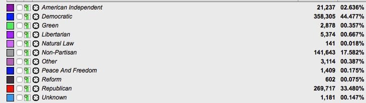 A remarkably high number given that both the Republican and Democratic parties are spending millions of dollars on get out the vote programs and “member communication” that’s legally restricted to voters registered to their parties.