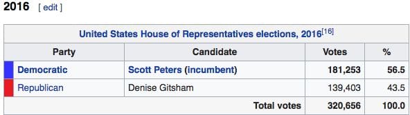 Democrat Scott Peters is the incumbent. No Democrat is challenging Peters.