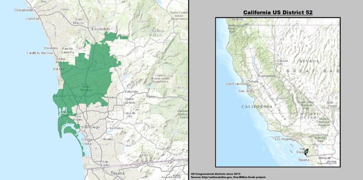 The 52nd congressional district consists of several communities in San Diego County including Del Mar, La Jolla, Tierrasanta, Linda Vista and Coronado.
