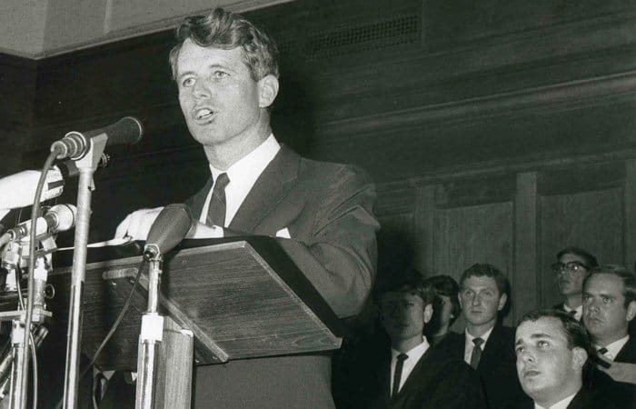 “We stand here in the name of freedom. At the heart of that western freedom and democracy is the belief that the individual, the child of God, is the touchstone of value, and all society, all groups, and states, exist for that person's benefit. Therefore the enlargement of liberty for individual human beings must be the supreme goal and the abiding practice of any western society.The first element of this individual liberty is the freedom of speech; the right to express and communicate ideas, to set oneself apart from the dumb beasts of field and forest; the right to recall governments to their duties and obligations; above all, the right to affirm one's membership and allegiance to the body politic – to society – to those with whom we share our land, our heritage and our children's future.Hand in hand with freedom of speech goes the power to be heard – to share in the decisions of government which shape our lives. Everything that makes our lives worthwhile – family, work, education, a place to rear one's children and a place to rest one's head – all this depends on the decisions of government; all can be swept away by a government which does not heed the demands of its people, and I mean all of its people. Therefore, our essential humanity can be protected and preserved only where the government must answer – not just to the wealthy; not just to those of a particular religion, not just to those of a particular race; but to all of the people.And even government by the consent of the governed, as in our own Constitution, must be limited in its power to act against its people: so that there may be no interference with the right to worship, but also no interference with the security of the home; no arbitrary imposition of pains or penalties on an ordinary citizen by officials high or low; no restriction on the freedom of men to seek education or to seek work or opportunity of any kind, so that each man may become all that he is capable of becoming…For two centuries, my own country has struggled to overcome the self-imposed handicap of prejudice and discrimination based on nationality, on social class or race – discrimination profoundly repugnant to the theory and to the command of our Constitution. Even as my father grew up in Boston, Massachusetts, signs told him that 'No Irish Need Apply'.Two generations later, President Kennedy became the first Irish Catholic, and the first Catholic, to head the nation; but how many men of ability had, before 1961, been denied the opportunity to contribute to the nation's progress because they were Catholic, or because they were of Irish extraction? How many sons of Italian or Jewish or Polish parents slumbered in the slums – untaught, unlearned, their potential lost forever to our nation and to the human race…We must recognize the full human equality of all of our people – before God, before the law, and in the councils of government. We must do this, not because it is economically advantageous – although it is; not because the laws of God command it – although they do; not because people in other lands wish it so. We must do it for the single and fundamental reason that it is the right thing to do.Our answer is the world's hope; it is to rely on youth. The cruelties and the obstacles of this swiftly changing planet will not yield to obsolete dogmas and outworn slogans. It cannot be moved by those who cling to a present that is already dying, who prefer the illusion of security to the excitement and danger that comes with even the most peaceful progress. This world demands the qualities of youth: not a time of life but a state of mind, a temper of the will, a quality of imagination, a predominance of courage over timidity, of the appetite for adventure over the life of…'There is,' said an Italian philosopher, ‘nothing more difficult to take in hand, more perilous to conduct, or more uncertain in its success than to take the lead in the introduction of a new order of things.’ Yet this is the measure of the task of your generation and the road is strewn with many dangers.First is the danger of futility; the belief there is nothing one man or one woman can do against the enormous array of the world's ills – against misery, against ignorance, or injustice and violence. Yet many of the world's great movements, of thought and action, have flowed from the work of a single person.A young monk began the Protestant reformation, a young general extended an empire from Macedonia to the borders of the earth, and a young woman reclaimed the territory of France. It was a young Italian explorer who discovered the New World, and 32-year old Thomas Jefferson who proclaimed that all men are created equal. ‘Give me a place to stand,’ said Archimedes, ‘and I will move the world.’Few will have the greatness to bend history; but each of us can work to change a small portion of the events, and in the total of all these acts will be written the history of this generation…Each time a man stands up for an ideal, or acts to improve the lot of others, or strikes out against injustice, he sends forth a tiny ripple of hope, and crossing each other from a million different centers of energy and daring those ripples build a current which can sweep down the mightiest walls of oppression and resistance.