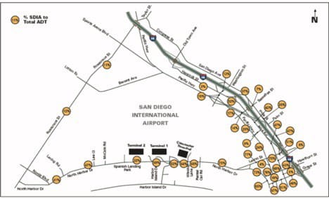 Even Rosecrans Street between Sports Arena Boulevard and Lytton Street received 12 percent of its traffic from the airport.