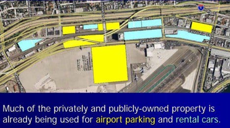 The problem isn’t this very handy airport. The problem is how transportation connects to the airport and the impact of those poor transportation linkages on the adjacent communities. Our goal in sharing the ITC concept was to suggest a fix to that problem and to do the heavy lifting of showing how it would work.